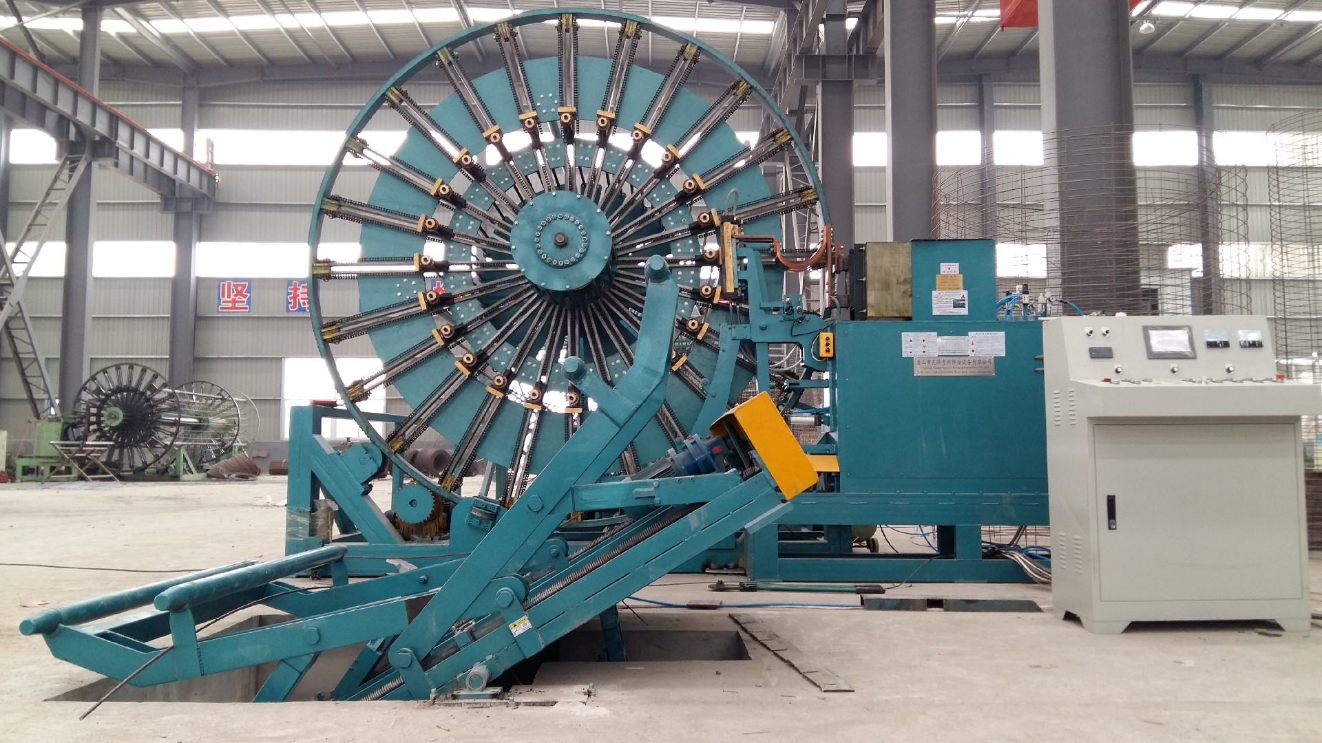 我公司生產(chǎn)的排水管滾焊機(jī)的可翻轉(zhuǎn)電動托籠架,因其方便,減輕勞動強度等優(yōu)勢已在國內(nèi)外用戶中廣泛使用。但焊完的鋼筋籠卸到地面的問題,還未能解決,還需借助人力操作或起重設(shè)備(大型鋼筋籠時)完成卸籠,人力卸籠時勞動強度很大,且存在一定的危險性,而我們研制的排水管滾焊機(jī)的可翻轉(zhuǎn)電動托籠可以實現(xiàn)鋼筋籠下降并自動翻滾至地面,大大減輕工人的勞動強度,而且有效,不會損傷鋼筋籠。